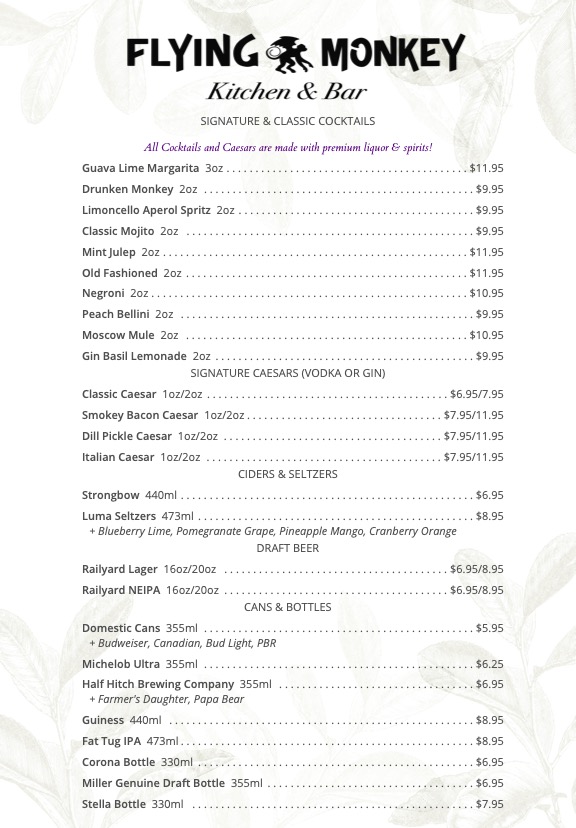 Flying Monkey Airport Cafe Menu (2025 Update)